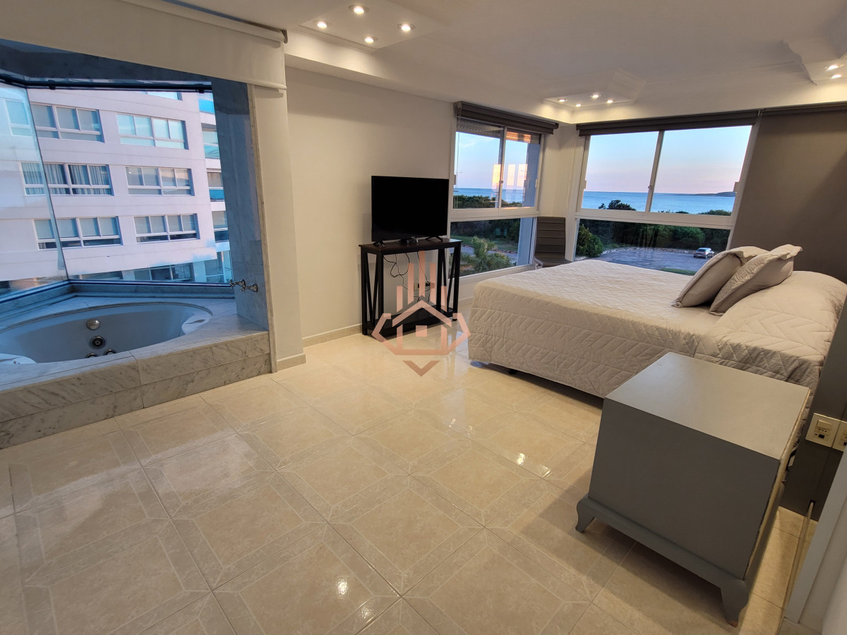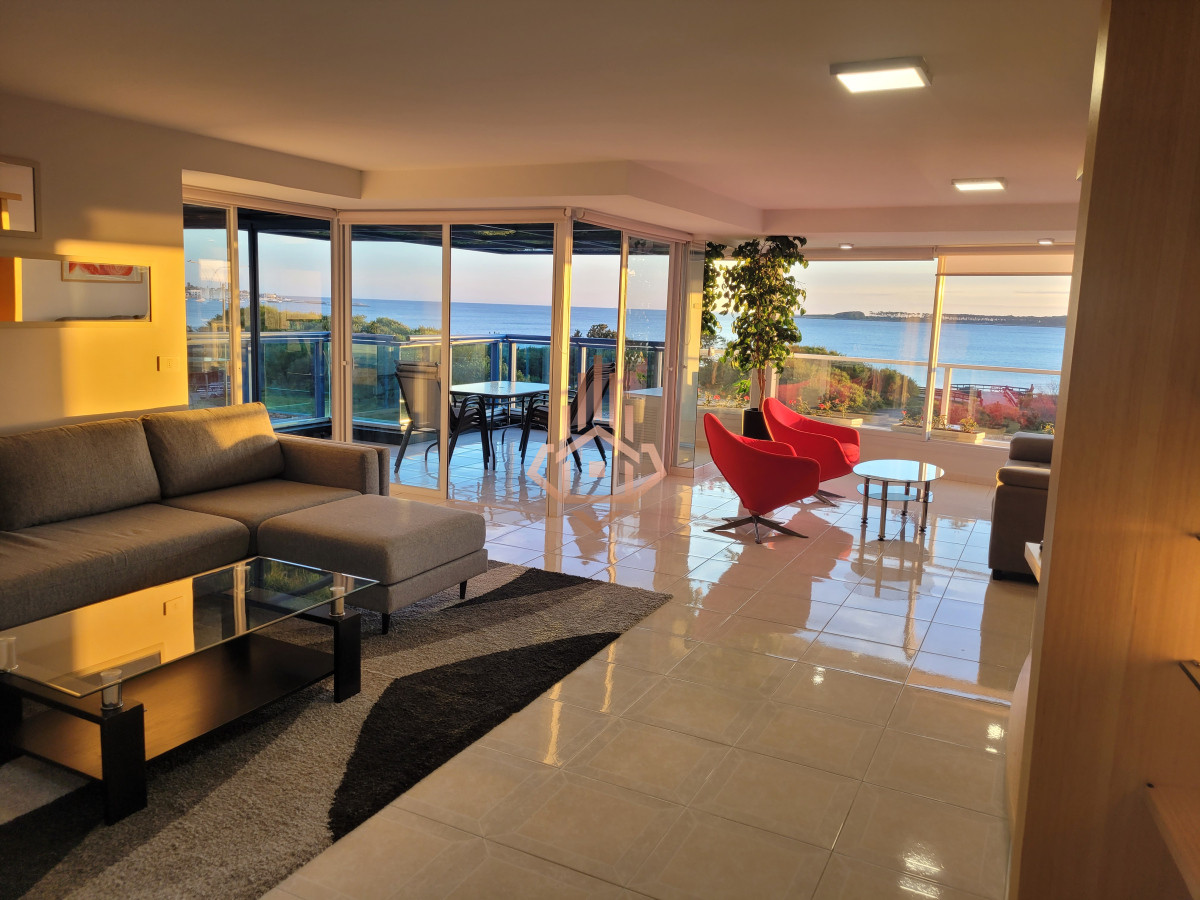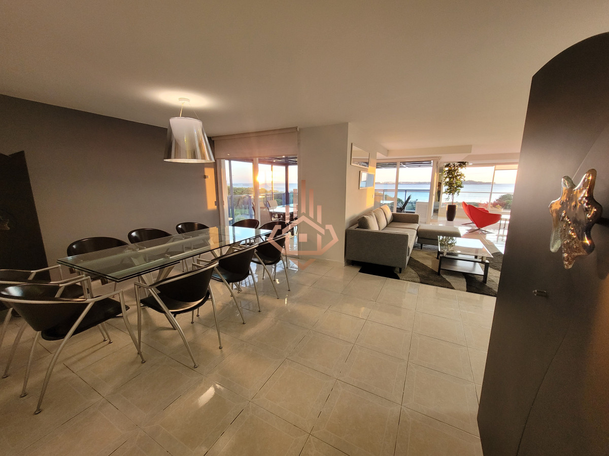 Dirigido al comprador que busca una experiencia residencial de alto estándar —familia o ejecutivo que valora amplitud, privacidad y servicios de resort sin renunciar a la cercanÃa del centro de Punta del Este. La propiedad 240 m² propios, planta Ãntegramente al frente. Ventanales piso-techo y orientación oeste que regala atardeceres sobre Isla Gorriti. Tres suites + dependencia de servicio. Máster con hidromasaje panorámico encastrado en bow-window y vista directa al mar. Living–comedor vidriado: puesta de sol desde cada sillón; espacio ideal para recibir invitados. Terraza principal con parrillero privado y cerramiento rebatible; segunda terraza de servicio al contrafrente. Cocina gourmet en lÃnea con comedor diario, doble mesada de granito, lÃnea blanca de primera categorÃa. Losa radiante sectorizada y equipos de climatización split en todos los ambientes. Doble garage + baulera privada en subsuelo. Detalles de terminación Pisos porcelanato brillante en toda la planta. Herrajes y griferÃa bañados en oro de 24 quilates. CarpinterÃa laqueada y mamparas templadas. Iluminación empotrada LED tipo gallery. Amenidades del edificio Recepción 24 h, vigilancia CCTV, mucamas y mantenimiento diario. Piscinas climatizadas interior y exterior, jacuzzis, sauna, vestuarios. Gimnasio equipado, canchas de tenis, paddle, básquet y papi-fútbol. Barbacoa para 42 personas, snack-bar con servicio en temporada. Salas de juego para niños, adolescentes y adultos; servicio de masajes y de playa. Consultá para más información, visita personalizada y detalles sobre condiciones de venta. Precio Usd 1.100.000