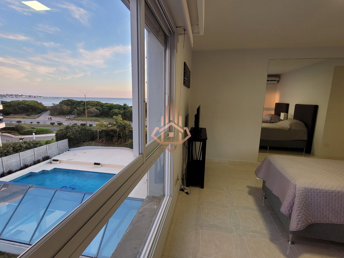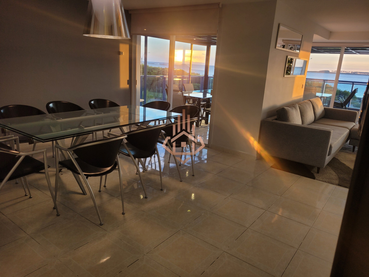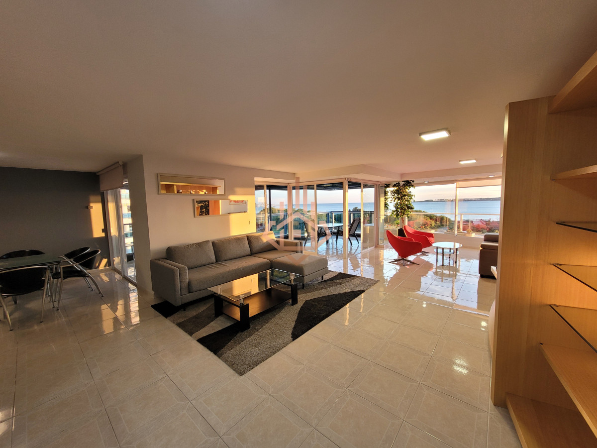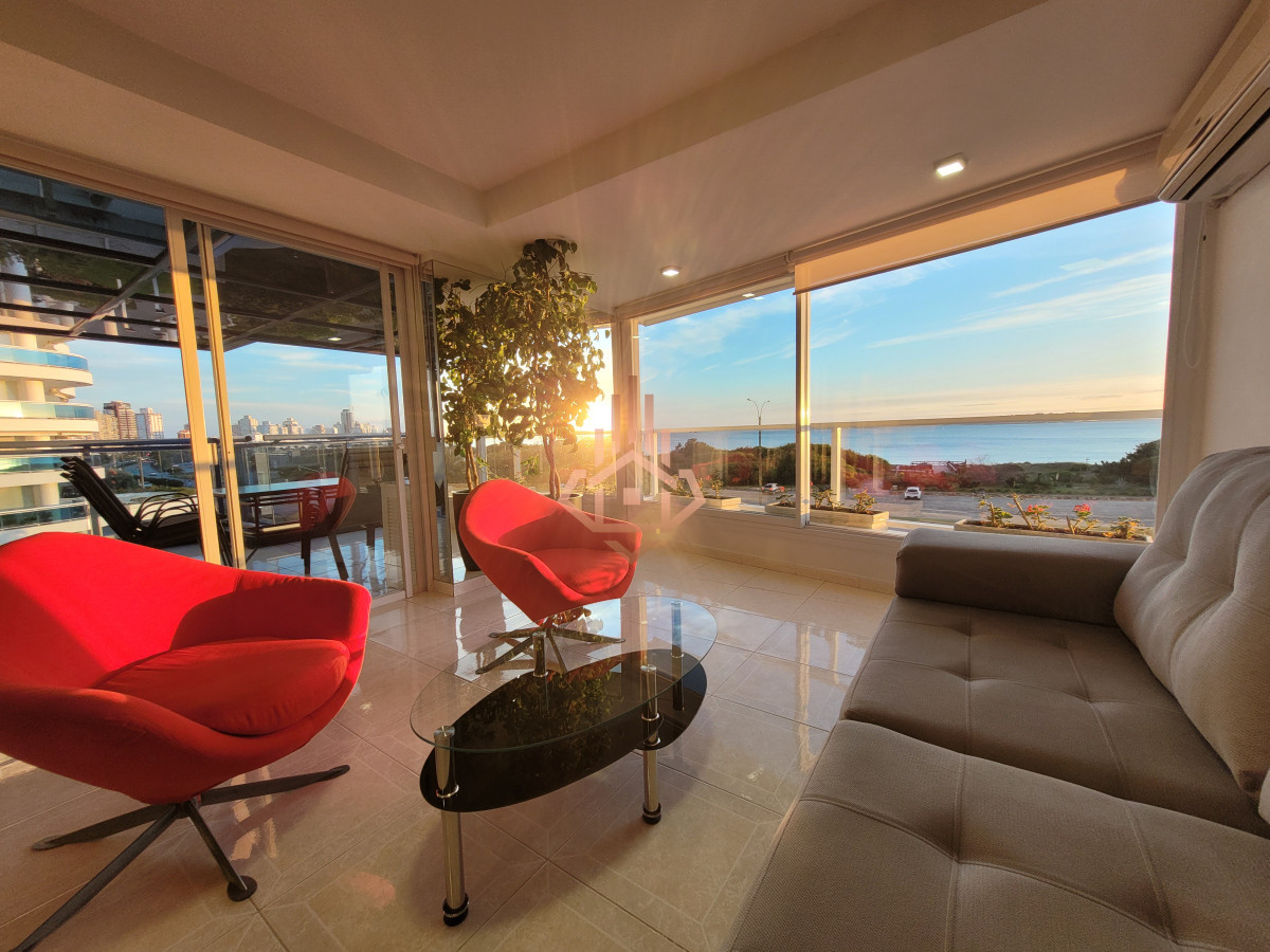 Dirigido al comprador que busca una experiencia residencial de alto estándar —familia o ejecutivo que valora amplitud, privacidad y servicios de resort sin renunciar a la cercanÃa del centro de Punta del Este. La propiedad 240 m² propios, planta Ãntegramente al frente. Ventanales piso-techo y orientación oeste que regala atardeceres sobre Isla Gorriti. Tres suites + dependencia de servicio. Máster con hidromasaje panorámico encastrado en bow-window y vista directa al mar. Living–comedor vidriado: puesta de sol desde cada sillón; espacio ideal para recibir invitados. Terraza principal con parrillero privado y cerramiento rebatible; segunda terraza de servicio al contrafrente. Cocina gourmet en lÃnea con comedor diario, doble mesada de granito, lÃnea blanca de primera categorÃa. Losa radiante sectorizada y equipos de climatización split en todos los ambientes. Doble garage + baulera privada en subsuelo. Detalles de terminación Pisos porcelanato brillante en toda la planta. Herrajes y griferÃa bañados en oro de 24 quilates. CarpinterÃa laqueada y mamparas templadas. Iluminación empotrada LED tipo gallery. Amenidades del edificio Recepción 24 h, vigilancia CCTV, mucamas y mantenimiento diario. Piscinas climatizadas interior y exterior, jacuzzis, sauna, vestuarios. Gimnasio equipado, canchas de tenis, paddle, básquet y papi-fútbol. Barbacoa para 42 personas, snack-bar con servicio en temporada. Salas de juego para niños, adolescentes y adultos; servicio de masajes y de playa. Consultá para más información, visita personalizada y detalles sobre condiciones de venta. Precio Usd 1.100.000